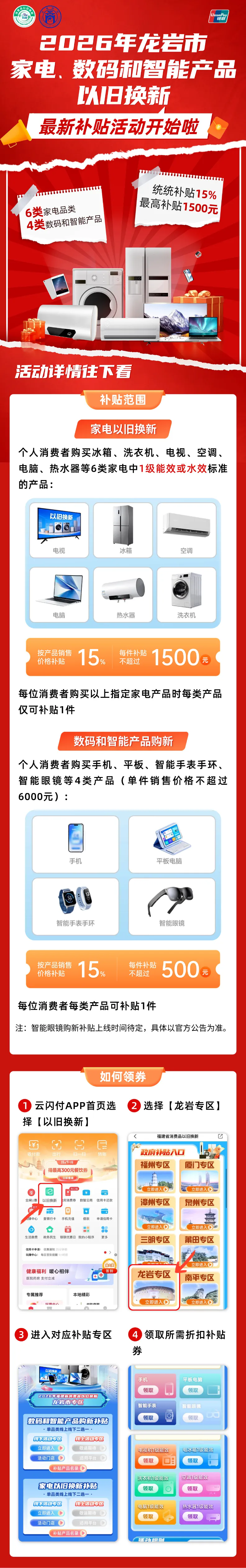 2026年龙岩市家电、数码和智能产品以旧换新最新补贴活动开始啦!