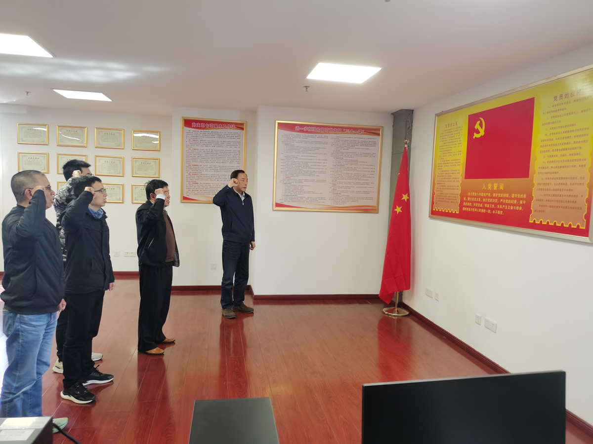 “我志愿加入中国共产党......随时准备为党和人民牺牲一切,永不叛党。”最后,由陈时儆同志领誓,支部全体党员面向党旗举起右拳重温入党誓词,声音铿锵有力,内心满是坚定。