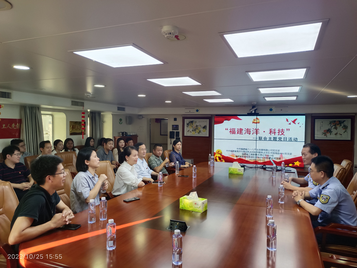 为深入学习贯彻习近平新时代中国特色社会主义思想,深刻感悟习近平总书记的“海洋情怀”,奋力推进海洋强省建设,10月25日,省政府投资项目评审中心项目二处党支部联合省工商联青年理论学习小组、省六一八产业发展有限公司党支部、省海洋与渔业总队特勤执法支队中国海监8001党支部共同组织开展了“奋进新征程、建功新时代”主题党日活动。