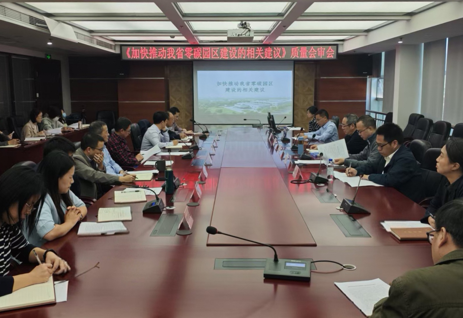 2025年11月24日下午,中心组织召开了《加快推动我省零碳园区建设的相关建议》质量会审会议。中心领导、省发改委环资处领导、特邀专家、各处室负责人、项目组成员以及中心技术人员参加了会议。会审会由总工办主持,项目组介绍了课题成果相关内容,与会人员发表了意见,并提出了具体的补充修改完善意见。会议认为课题成果结构清晰、内容丰富,结合中心承担的国家级零碳园区建设方案评审和省外零碳园区调研情况提出的对策建议,具有一定的指导性和可操作性。下一步项目组应充分吸收会议提出的修改意见和建议,对报告作进一步完善。