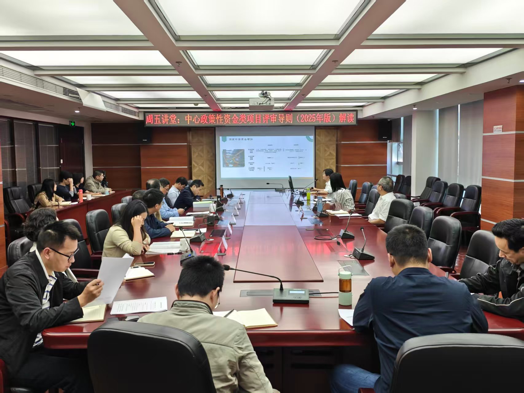 为进一步凝聚共识,提升政策性资金类项目评审质量。11月14日下午,省政府投资项目评审中心组织开展2025年第四期《周五讲堂》(总第四十三期)专题讲座。项目五处张丽玲同志以《中心政策性资金类项目评审导则(2025年版)解读》为题,详细阐述了导则修订的背景、目的和主要内容,重点介绍了各评审环节及注意事项,同时结合自身的工作实践分享了提升项目评审质量的心得体会。