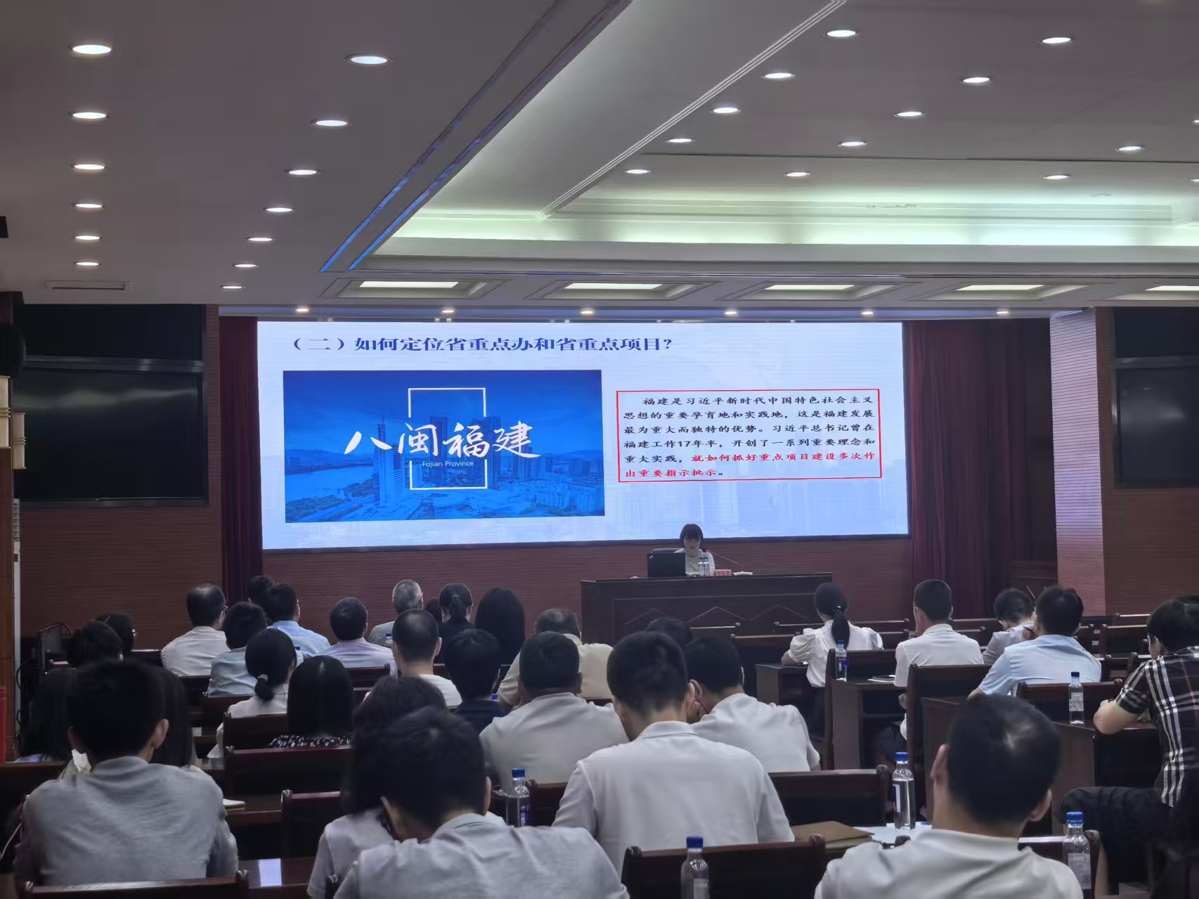 为更加主动融入发展改革工作大局,服务全省重点项目建设,9月29日,中心组织全体干部参加省发改委第十二期“强技能 促提升”业务培训。省发改委重点项目综合管理处雷晶晶同志以《重大项目季度调研服务的正确打开方式》为题,重温学习习近平总书记在福建工作期间关于重点项目建设的重要论述,介绍我省重点项目储备情况,结合特色案例系统解读重点项目管理工作要点,梳理分析应开工未开工项目、建设进度滞后项目产生的原因和推进项目建设的办法举措,为中心今后更好地开展重点项目策划和季度调研提供了有益借鉴。