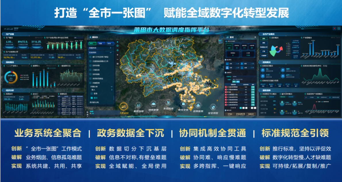 莆田市创新“全市一张图、全域数字化”工作模式,以系统化、集约化思维建设“大集中、大整合、高共享”应用平台,推动数据集成开发、共享应用,构建全局互联互通、全量数据汇聚、全域业务协同的运行体系,建立以用促建、以评促用的长效机制,统筹提升政府公共服务能力,推动城市治理体系和治理能力全面变革。