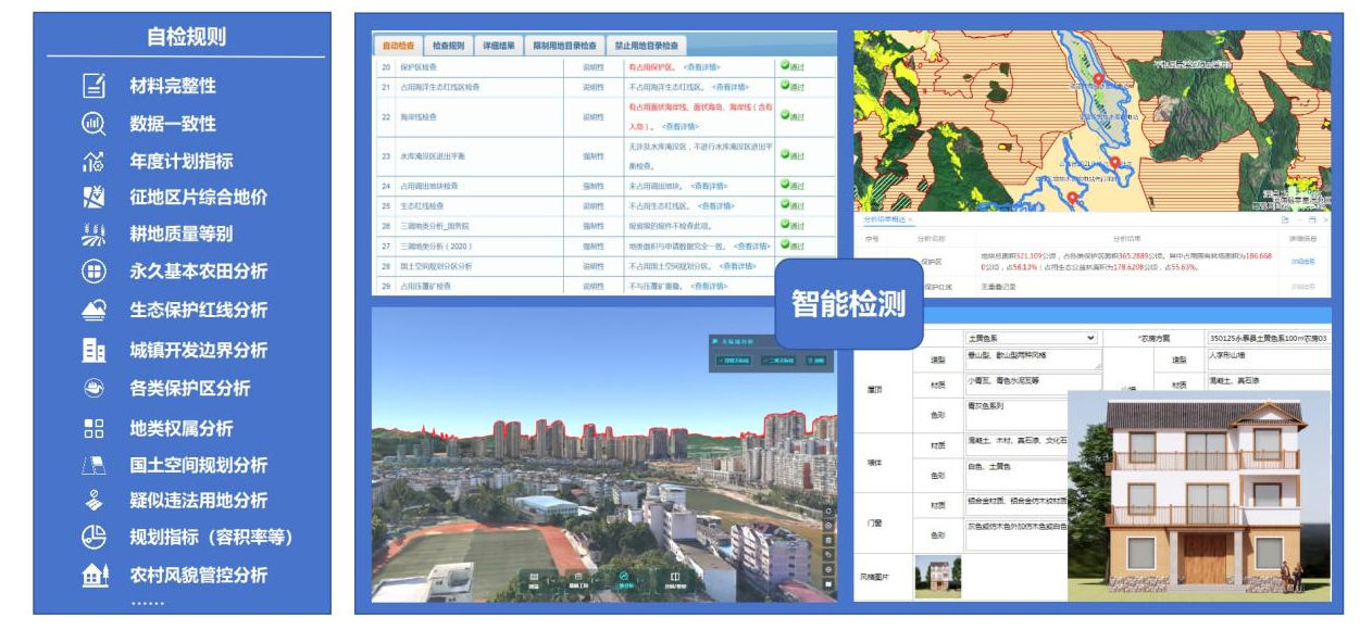 建立智能组卷、智能检测模型,促进用途管制智能化。为解决规则覆盖盲区与特殊场景误判等问题,建立省级双随机“抽查”模式,自动抽取一定比例由人工复核,定期通报,确保要素保障质量与效率“双保险”。