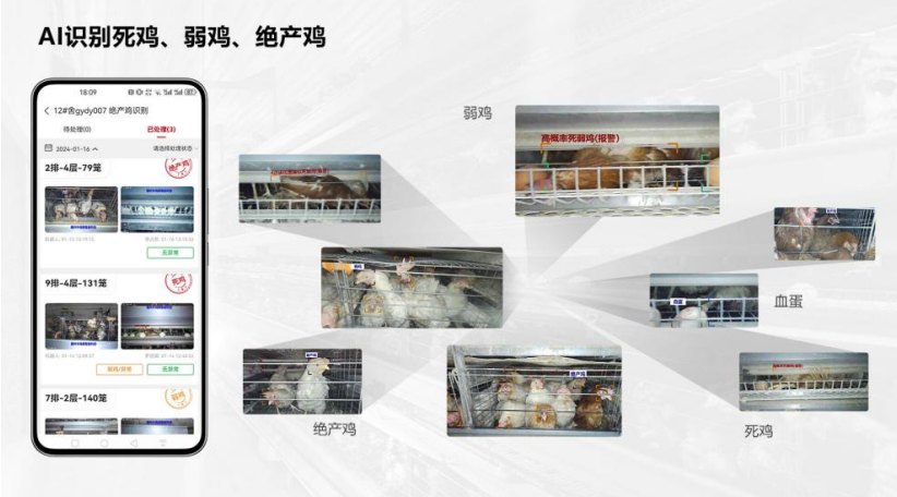 ▲及时发现并定位死鸡、绝产鸡、弱鸡等 没有养殖价值的蛋鸡