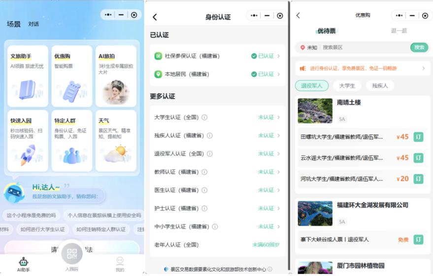 通过“景旅纵横”小程序与退役军人事务厅、残疾人联合会数据互通,实现电子身份自动核验,更以技术消弭“出示证件自证身份”的心理门槛。景区不再只是景观空间,更成为传递国家尊重、科技的人文价值由此具象化。