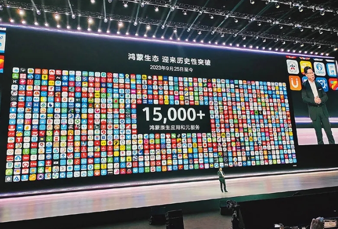 图为2024年10月22日,华为原生鸿蒙系统HarmonyOS NEXT在深圳发布。这是我国首个全自研国产移动操作系统,也是全球第三大移动操作系统。 新华社记者 白瑜/摄