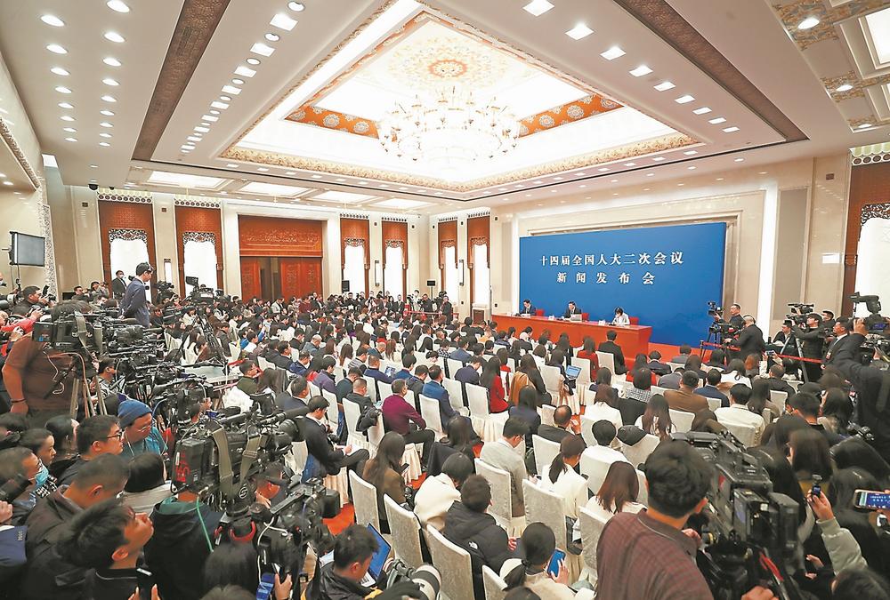 4日,十四届全国人大二次会议在北京人民大会堂举行新闻发布会。新华社